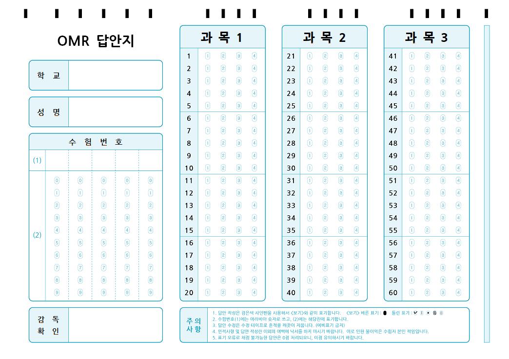 OMR답안지_3과목_60문항_4지_A4.hwp (693.5Kbyte)  [1]  DATE : 0000-00-00 00:00:00